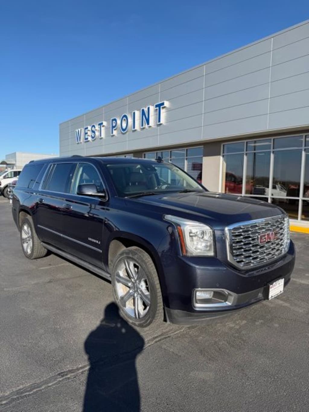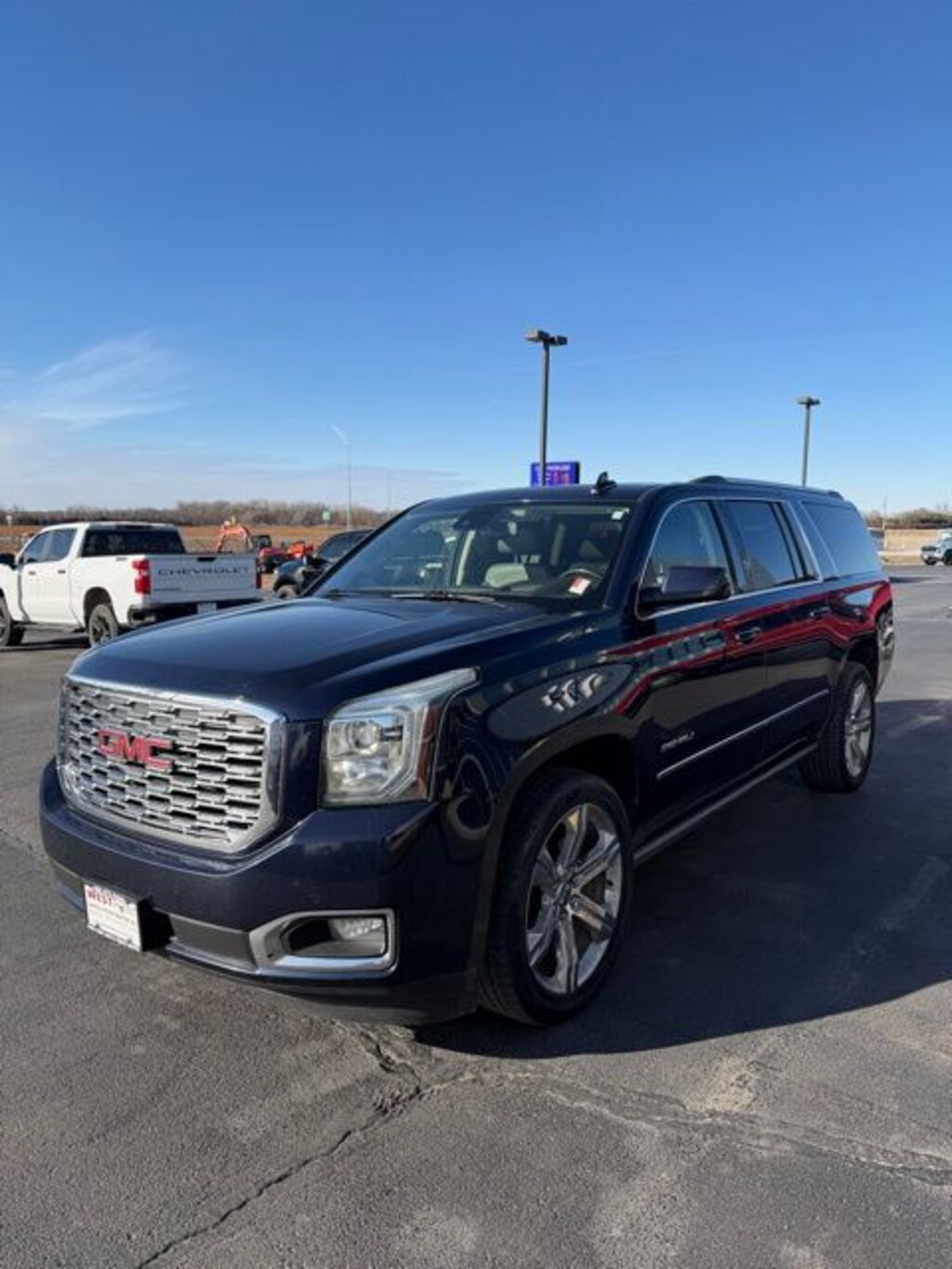 Dark Sapphire Blue Metallic 2019 GMC Yukon XL Denali 4WD 10-Speed Automatic with Overdrive EcoTec3 6.2L V8 **CLEAN VEHICLE HISTORY**, **LOCAL TRADE IN**, DVD Player, Power Sunroof, OnStar, Satellite Radio, Leather Seats, Rear Bucket Seats, 4WD, 10 Speakers, 3.23 Rear Axle Ratio, 3rd Row DVD Screen, 3rd row seats: split-bench, 4-Wheel Antilock Disc Brakes, 4-Wheel Disc & 4-Wheel VAC Power Antilock Brakes, 4-Wheel Disc Brakes, 5 Auxiliary 12-volt Power Outlets, ABS brakes, Adaptive suspension, Adjustable pedals, Advanced Adaptive Cruise Control, Air Conditioning, Alloy wheels, AM/FM radio: SiriusXM, Apple CarPlay/Android Auto, Auto High-beam Headlights, Auto-dimming door mirrors, Auto-dimming Rear-View mirror, Automatic temperature control, Black Assist Steps w/Chrome Strip, Bodyside moldings, Bose Active Noise Cancellation, Bose Centerpoint Surround Sound Audio System, Brake assist, Bumpers: body-color, CD Player, CD player, Compass, Delay-off headlights, Denali Ultimate Package, Driver door bin, Driver vanity mirror, Dual front impact airbags, Dual front side impact airbags, Electronic Stability Control, Emergency communication system: OnStar and GMC connected services capable, Enhanced Driver Alert Package, Enhanced Security Package, Exterior Parking Camera Rear, Forward Automatic Braking, Forward Collision Alert, Front anti-roll bar, Front Bucket Seats, Front Center Armrest, Front dual zone A/C, Front fog lights, Front reading lights, Front wheel independent suspension, Full-Feature Reclining Bucket Seats, Fully automatic headlights, Garage door transmitter, Genuine wood console insert, Genuine wood dashboard insert, Genuine wood door panel insert, Hands Free Power Programmable Rear Liftgate, Heads-Up Display, Heated & Ventilated Driver & Front Passenger Seats, Heated door mirrors, Heated front seats, Heated Leather-Wrapped Steering Wheel, Heated rear seats, Heated steering wheel, High-Intensity Discharge Headlights, Illuminated entry, Inside Rear-View Auto-Dimming Mirror, Integrated Trailer Brake Controller, IntelliBeam Automatic High Beam On/Off, Lane Change Alert w/Side Blind Zone Alert, Lane Keep Assist w/Lane Departure Warning, Leather Shift Knob, License Plate Front Mounting Package, Low Speed Forward Automatic Braking, Low tire pressure warning, Magnetic Ride Control Suspension Package, Memory Package, Memory seat, Navigation System, Occupant sensing airbag, Open Road Package, Outside temperature display, Overhead airbag, Overhead console, Panic alarm, Passenger door bin, Passenger vanity mirror, Passive Entry System, Pedal memory, Perforated Leather-Appointed Seat Trim, Power door mirrors, Power driver seat, Power Liftgate, Power passenger seat, Power Release 2nd Row Bucket Seats, Power steering, Power Tilt & Telescopic Steering Column, Power Tilt-Sliding Sunroof w/Express-Open/Close, Power windows, Power-Adjustable Pedals For Accelerator & Brake, Preferred Equipment Group 5SA, Premium audio system: IntelliLink, Push Button Keyless Start, Pwr Retractable Assist Steps w/Perimeter Lighting, Radio: AM/FM/SiriusXM w/Navigation, Rain sensing wipers, Rear air conditioning, Rear anti-roll bar, Rear Cross Traffic Alert, Rear reading lights, Rear Seat Blu-Ray/DVD Entertainment System, Rear window defroster, Rear window wiper, Remote Keyless Entry, Remote keyless entry, Roof rack: rails only, Security system, SiriusXM NavTraffic, SiriusXM Radio, Speed control, Speed-sensing steering, Split folding rear seat, Spoiler, Steering wheel memory, Steering wheel mounted audio controls, Tachometer, Telescoping steering wheel, Theft-Deterrent Alarm System, Tilt steering wheel, Traction control, Trip computer, Turn signal indicator mirrors, Universal Home Remote, Variably intermittent wipers, Vehicle Inclination Sensor, Vehicle Interior Movement Sensor, Ventilated front seats, Voltmeter, Wheels: 20" x 9" Bright Machined Aluminum, Wheels: 22" x 8.5" Bright Aluminum, Wireless Charging, 4WD.